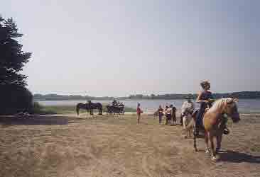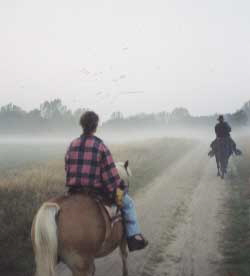oben links: Reiten im Nebel zum See